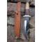 Couteau Bowie à lame fixe - Longueur totale 32.5cm - Longueur de la lame 20cm - Lame en acier carbone 1075 - Lame de type clip point Bowie - Garde & pommeau en nickel - Manche en bois - Etui Cuir - Fabrication Artisanale