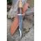 Poignard Bowie Couteau Chasseur Ours Lame Acier Carbone 1075 Manche 2 Bois Etui Cuir Fab Artisanat