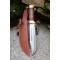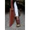 Couteau Bowie Stacked Leather Hunter à lame fixe - Longueur totale 30cm - Longueur de la lame 18cm - Lame en acier carbone 1055 - Lame de type Bowie - Garde & pommeau en laiton - Manche en rouleaux de cuir - Etui Cuir - Fabrication Artisanale