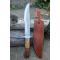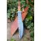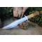 Couteau de chasse Bushcraft Survie à lame fixe - Longueur totale 39cm - Longueur de lame 25cm - Lame en acier carbone 1055 - Lame type harpoon plain edge - Dents sur le haut de la lame - Construction d'une seule pièce - Full tang - Plaquettes du manche en bois - Grosse garde en acier - Etui cuir - Fabrication artisanale