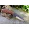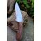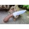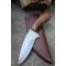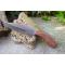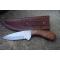 Couteau de chasse Bushcraft Survie à lame fixe - Longueur totale 20.5cm - Longueur de lame 11.5cm - Lame en acier carbone 1055 - Lame type drop point plain edge finition satin - Construction d'une seule pièce - Full tang - Plaquettes du manche en bois rosewood - Forme crosse de revolver - Etui cuir - Fabrication artisanale