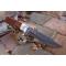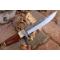 Poignard de Chasse Survie Lame Acier Carbone 1055 Manche Bois Os Acier Etui Cuir Fabric Artisanale