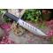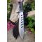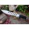 Couteau Machette Chasse Bowie à lame fixe - Longueur totale 37cm - Longueur de lame 25cm - Lame en acier inox 3Cr13 - Lame de type bowie plain edge finition satin - Bout de la lame avec dents sur le haut - Grosse garde en acier - Manche en abs - Pommeau brise Noix de coco - Etui nylon