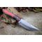 Poignard Couteau de Chasse Lame Acier Carbone 1055 Manche 2 Bois Etui Cuir Fabric Artisananale