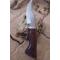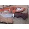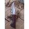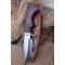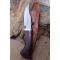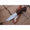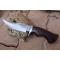 Couteau de chasse Bushcraft Survie à lame fixe - Longueur totale 26cm - Longueur de lame 12.5cm - Lame en acier carbone 1055 - Lame type clip point plain edge finition satin - Gros manche en bois - Grosse garde en nickel - Bel Etui cuir avec insert peau - Fabrication artisanale