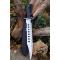 Couteau Machette Chasse Bowie à lame fixe - Longueur totale 44cm - Longueur de lame 30cm - Lame en acier inox 440 - Lame de type bowie plain edge finition satin - Grosse garde en acier - Manche en abs - Trou dans le manche pour dragonne - Etui nylon