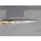 Lame de 17,5 cm très tranchante et pointue à dos plat en section en T, typique de ces couteaux.