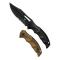 Poignard Takumitak "Obsidian", lame Clip Point semi-dentée à trou revêtement noir, manche avec 2 jeux de plaquettes interchangeables ABS noir et marron. Livré avec étui ABS noir avec clip compatible M.O.L.L.E..
