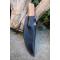 Couteau Puukko - Longueur du manche 12cm - Longueur de la lame 12.5cm - Tranchant de 11.5cm - Lame en Acier damas 256 couches - Beau dessin gouttes d'eau - Lame de type drop point - Manche en bois - Entretoises en résine - Garde en nickel - Fabrication Artisanale - Etui cuir - Fabrication artisanale