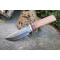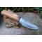 Poignard Puukko Couteau Lame Acier Damas 256 Couches Drop Point Manche Bois Fab Artisanale Etui Cuir