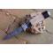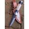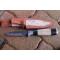 Couteau Puukko - Longueur du manche 14cm - Longueur de la lame 12cm - Tranchant 9.5cm - Lame en Acier damas 256 couches - Lame de type drop point - Manche en os & bois - Garde & pommeau en nickel - Fabrication Artisanale - Etui cuir - Insert peau - Fabrication artisanale
