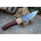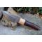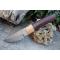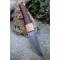 Couteau Puukko - Longueur du manche 13.5cm - Longueur de la lame 12cm - Tranchant de 10cm - Lame en Acier damas 256 couches - Lame de type harpoon - Manche en bois - Mitres en bois - Fabrication Artisanale - Etui simili cuir - Fabrication artisanale