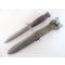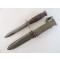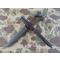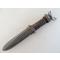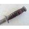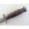 USM3 marquage garde fabriqué par Imperial Knife Cutlery au cours des contrats militaires US de la WW2. Imperial a produit environ 854015 USM3 pour 13 variantes différentes observées d’après le livre de Bill Walters, le plus récent et le plus complet sur le sujet. Cet exemplaire est une version avec le marquage sur la garde et 8 espaces sur la poignée cuir, pas d’entretoise plastique. Il est en très bon état et les photos participent à sa description. La lame mesure 164 mm, plus courte qu’à l’origine, largeur d’origine, pas de dent, pas de choc, pas d’oxydation, pas de trace d’affutage, parkérisation d’origine présente à 70%. La poignée cuir est en très bon état, pas de rondelles craquées, pas de manque, aucune rondelle ne bouge, pas de jeu à la garde. Marquage USM3 IMPERIAL sur la garde et l’Ordnance Bomb présente au pommeau. Fourreau US WW2 USM8A1 BMCO en bon état. Marquage USM8A1 BMCO sur la chape, VP21 au dos et code B4/7N sous l’oreille de chape. Le bout de la gaine est fendu mais pas cassé, ça n'est pas traversant.