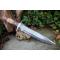 Longueur du manche 13.5cm - Longueur de la lame 24.5cm - Tranchant de 21.5cm - Lame en Acier damas 256 couches - Construction d'une seule pièce - Full tang - Lame de typeclip point - Garde en nickel - Manche en 2 bois - Fabrication Artisanale - Les dessins de la lame sont uniques comme une empreinte - Etui cuir