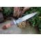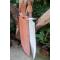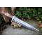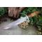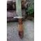 Longueur du manche 13.5cm - Longueur de la lame 24.5cm - Tranchant de 21.5cm - Lame en Acier damas 256 couches - Construction d'une seule pièce - Full tang - Lame de typeclip point - Garde en nickel - Manche en 2 bois - Fabrication Artisanale - Les dessins de la lame sont uniques comme une empreinte - Etui cuir