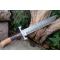 Poignard XXL Couteau Damas Lame 256 Couches Drop Point Manche 2 Bois Fabr Artisanale Etui Cuir