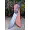 Poignard XXL Couteau Damas Lame 256 Couches Drop Point Manche Bois/Résine Fabr Artisanale Etui Cuir
