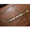 Très bon état, objet d'apparat (ne coupe pas). Incrustations de pierres brillantes de couleur. Longueur totale avec foureau : 37,5cm. Longueur totale poignard : 32,5cm. Longueur lame : 17,8cm.