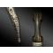 Lame en damas, courbe, à deux tranchants et arête médiane.