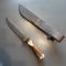 Vend magnifique poignard de style indien, acier 1095, finition "stonewash", longueur de lame de 17,7cm, épaisseur 4,5mm, garde en laiton, manche en bois de cerf, ébène, loupe de peuplier stabilisé bleu, intercalaire noir/rouge, noir/blanc, rivet mosaïque. Etui cuir pleine fleur 1er choix . Le couteau est comme neuf "collectionneur ".