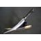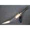Lame ajourée et gravée, à simple tranchant et contre tranchant prononcé sur sa seconde moitié (léger accident à la pointe).