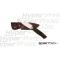 Les plaquettes composants le manche sont en bois de Cocobolo, un bois rougeâtre que l'on retrouve en Amérique centrale. Une mitre en acier polie miroir légèrement dorée vient le compléter.