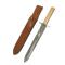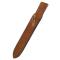 Il pocède une garde en acier pour plus de sécurité et est vendu avec un fourreau en cuir marron disposant d'un passage pour l'accroche à la ceintutre.