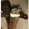 Très beau couteau ou poignard ,manche en bois de cerf ,embout en bronze ,tête de sanglier,garde ,patte de sanglier, lame en acier ,longue de19 centimètres ,large de22 milimerres ,epaisses de 4 millimètre, étui en cuir cousu,bonnes coutures.