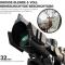 Ajustement du vent et de l'élévation par billes et roulements pour plus de précision 100% résistant aux chocs et au recul, rempli d'azote, résistant aux chocs, à la brume et à l'eau Corps de qualité aéronautique 6061 T6 Objectif : 32 mm Pupille de sortie (mm) : 8 Soulagement des yeux (mm) : 89