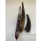 Une, avec le corps en bois, embout bec d'oiseau en métal, deux cerclages et mécanisme poussoir fonctionnel avec ressort en V. Très belle patine.
