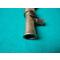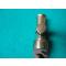 Ancienne poire à plomb en cuir souple redoublé d'un coté, tête en laiton à bec verseur évasé munie d'un fermoir à ressort.