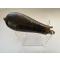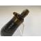 Poire à poudre en acier recouverte de cuir, avec des boursouflures entre le cuir et la poire certainement de l'oxydation, embout laiton gradué, mécanisme fonctionnel avec ressort impeccable.