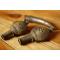 2 poires à poudre ainsi qu'une corne. Les objets sont en bronze. Origine Afrique sans précision? Datation inconnue.