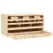 Pondoir 3 compartiments 72x33x38 cm bois de pin massifCe nichoir fournira à vos poules un endroit confortable et protégé pour pondre leurs oeufs ! Les 3 compartiments spacieux permettent à 3 grandes poules de s'installer et de pondre. Les oeufs tomberont doucement à travers les trous sur le sol et dans le tiroir sous-jacent, ce qui facilite la collecte des oeufs. La couche inférieure amovible vous permet de nettoyer facilement. Les perchoirs peuvent être repliés afin d'éviter que les poules perchent la nuit. Le toit plat le rend confortable pour les poules à s'installer et vous permet également d'empiler facilement plusieurs nichoirs. Vous pouvez consulter notre boutique pour les nichoirs avec un toit en pente. Fabriqué en bois de pin solide et en contreplaqué, le pondoir est conçu pour une utilisation à long terme. Le nichoir est facile à assembler.