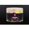 Disponible en pots de 150 ml de trois couleurs mélangées ; jaune, rose et noir