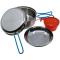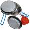 Petit prix mais grande qualité, c'est ce que l'on peut retenir de la popote CAO Rando. Aussi bien la casserole, la poêle et l'assiette sont en acier inoxydable de belle facture : longévité assurée, facilité d'entretien et construction saine pour la santé. Autre chose qu'il faut retenir au sujet de cette popote inox : ce sont ses poignées. Il s'agit de poignées entièrement rabattables (aussi bien sur la casserole ou sur la poêle). On a donc un maximum de gain de place pendant le transport : votre sac de randonnée vous dira merci. Et parce que ces poignées rabattables disposent d'un revêtement anti-brûlures, on ne risque pas de s'ébouillanter les mains en cuisinant ou en mangeant. Son surnom de popote Rando ou de popote de randonnée est amplement mérité.