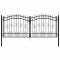 Portail de clôture Kampen avec pointe en acier noir 302 x 125 cmCe portail de clôture élégant et de haute qualité est revêtu de poudre pour le protéger contre la rouille et la corrosion, ce qui en fait un point d'entrée idéal pour la clôture de votre jardin ou de votre terrasse. Matériau durable : fabriquée en acier enduit de poudre, la barrière de jardin est extrêmement stable, solide et durable. Conception de haute sécurité : le portail offre un haut degré de sécurité grâce à son élégante conception supérieure arquée et à ses solides renforts horizontaux qui renforcent le cadre tout en formant une entrée étonnante pour votre propriété. Verrouillage rapide : un système de verrouillage robuste avec 3 clés assorties assure une sécurité supplémentaire pour votre cour. Remarque : Chaque produit est livré avec un manuel de montage dans la boîte pour un montage facile.