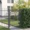 Portail de clôture avec pointes Emmen Gris 170 x 100 cmCe portail élégant combine style et fonctionnalité pour tout espace extérieur. Fait sur mesure pour les jardins et terrasses, il mixe un design intemporel avec de la sécurité. Construit en acier enduit de poudre qui résiste aux intempéries, ce portail rectangulaire est solide et esthétique, il améliore l'apparence de ton espace. Le design en arc avec ses pointes ajoute une touche de style tout en gardant ton jardin en sécurité. Acier enduit de poudre : Fabriqué avec de l'acier enduit de poudre de qualité, ce portail résiste à toutes les conditions météo et nécessite peu d'entretien. La finition durable évite les bosses et les rayures, parfait pour une exposition extérieure. Serrures à pêne dormant : Avec ses serrures à pêne dormant, ce portail est sécurisé, protégeant ton jardin des accès non autorisés. Les serrures sont solides et nécessitent une clé, te permettant de te sentir tranquille quant à la sécurité de ton espace. Design en arc : Le sommet en arc donne un beau look à ton jardin. Ce design avec des pointes ajoute une touche moderne, créant une entrée accueillante et stylée. Ensemble complet : Livré avec tout le nécessaire : deux poteaux solides, des charnières robustes et trois clés. Cet ensemble simplifie l'assemblage, garantissant une installation rapide et stable. Entretien : Facile à entretenir, il suffit d'essuyer de temps en temps avec un chiffon humide pour le garder frais, sans nécessiter de routines d'entretien compliquées. Un minimum d'entretien assure une apparence et une fonction durables.