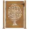 Portail de jardin 100x150 cm en acier Corten avec motif arbreCe portail de jardin, offrant une combinaison parfaite de résistance et de élégance, constitue un point d'entrée idéal pour la clôture autour de votre jardin ou terrasse. Matériau durable : le portail métallique est fabriqué en acier corten. Cet acier est anti-corrosif par nature. Il développe une couche protectrice contre la corrosion dès sa première exposition aux conditions atmosphériques. Il n'est donc pas nécessaire de le peindre. Cela peut vous aider à économiser sur les coûts d'entretien et de réparation. La couleur marronne distinctive de l'acier corten attirera sûrement tous les regards. Enfin, l'acier résistant aux intempéries est exceptionnellement durable et résiste à l'épreuve du temps. Design découpé au laser : le portail latéral a un beau design découpé au laser qui ajoute un charme particulier à votre maison. Système verrouillable : le portail en acier est équipé d'un système verrouillable pour plus de sécurité. Base stable : les 4 trous de fixation à la base du poteau de portail vous permettent de le fixer au sol pour plus de stabilité. Bon à savoir : Ce produit doit être assemblé. Ce produit n'est pas encore rouillé et a une couleur métallique normale lorsque vous le recevez, mais la rouille se développera au fil du temps. Vous pourriez accélérer le processus de rouille en le pulvérisant avec de l'eau savonneuse et de l'eau salée. Pour que vos vêtements ne soient pas tachés, évitez tout contact avec la couche de rouille qui se développe. N'utilisez pas cet article si l'un de ses composants est cassé, déchiré ou manquant. ,