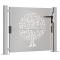 Portail de jardin 100x75 cm en acier Corten motif arbreCe portail de jardin, offrant une combinaison parfaite de résistance et de élégance, constitue un point d'entrée idéal pour la clôture autour de votre jardin ou terrasse. Construction robuste : cette porte de clôture est fabriquée en acier corten. Cet acier est anti-corrosif par nature. Il développe une couche protectrice contre la corrosion dès sa première exposition aux conditions atmosphériques. Il n'est donc pas nécessaire de le peindre. Cela peut vous aider à économiser sur les coûts d'entretien et de réparation. La couleur marronne distinctive de l'acier corten attirera sûrement tous les regards. Enfin, l'acier résistant aux intempéries est exceptionnellement durable et résiste à l'épreuve du temps. Design découpé au laser : la barrière de sécurité a un beau design découpé au laser qui ajoute un charme unique à votre maison. Système verrouillable : le portail extérieur est équipé d'un système verrouillable pour plus de sécurité. Facile à assembler : la porte est livrée avec deux poteaux avec plaques à bride et accessoires de montage pour une installation facile. Bon à savoir : Ce produit n'est pas encore rouillé et a une couleur métallique normale lorsque vous le recevez, mais la rouille se développera au fil du temps. Vous pourriez accélérer le processus de rouille en le pulvérisant avec de l'eau savonneuse et de l'eau salée. Pour que vos vêtements ne soient pas tachés, évitez tout contact avec la couche de rouille qui se développe. N'utilisez pas cet article si l'un de ses composants est cassé, déchiré ou manquant. ,
