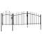 Portail de jardin Woerden en acier noir 1,25 m x 4 mCe portail de clôture de jardin durable et élégant formera une barrière de sécurité pratique pour votre jardin, patio ou terrasse. Grâce à son design élégant et arqué, ainsi qu'à ses robustes entretoises horizontales qui renforcent le cadre, notre portail de jardin offre un haut degré de sécurité et constitue une entrée fabuleuse sur votre propriété. Fabriqué en acier enduit de poudre, le portail est enduit de poudre contre la rouille et la corrosion. De plus, ce portail de clôture est équipé d'un système de verrouillage et est livré avec trois poteaux et des charnières robustes pour une installation facile. De plus, la tige de descente incluse aide à fixer en place les deux moitiés du portillon pour plus de sécurité. Ce portail de jardin est une excellente combinaison de style, résistance et stabilité ! ,