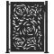 Portail de jardin noir 100x125 cm en acier avec motif flammeCe portail de jardin, offrant une combinaison parfaite de résistance et de élégance, constitue un point d'entrée idéal pour la clôture autour de votre jardin ou terrasse. Matériau durable : l'acier est un matériau exceptionnellement dur et résistant. Il offre robustesse et stabilité. La galvanisation offre une meilleure protection contre la corrosion et est utile pour les produits qui seront utilisés à l'extérieur ainsi que dans des environnements difficiles. Et le revêtement en poudre sur l'acier crée une couche protectrice contre l'usure. Design découpé au laser : la barrière de sécurité a un beau design découpé au laser qui ajoute un charme unique à votre maison. Conception verrouillable : le portail extérieur est équipé d'un système de verrouillage robuste fourni avec trois clés correspondantes, garantissant que le portail du patio peut être verrouillé en toute sécurité. Facile à assembler : la porte est livrée avec deux poteaux avec plaques à bride et accessoires de montage pour une installation facile. Nombreuses applications : le portail métallique est parfait pour améliorer les entrées de jardin, les allées et toutes les limites de propriété, combinant fonctionnalité et attrait visuel. ,