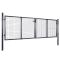 Portail de jardin grillagé en acier galvanisé 300 x 100 cm grisPrésentant un haut niveau de stabilité et de durabilité, ce portail peut être utilisé comme entrée moderne et pratique dans votre jardin, sur votre patio et terrasse. Le portail de jardin arbore un savoir-faire remarquable et est fabriqué en acier galvanisé enduit de poudre, qui résiste à la rouille et forme une construction robuste. Il possède deux poteaux latéraux avec des charnières à boulon pour une installation facile. Il possède également un piquet de sol pour le grand boulon inférieur, ce qui permet de bien verrouiller le portail. La livraison comprend également trois clés. ,