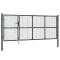 Portail de jardin grillagé Anthracite 350 x 125 cm Acier galvaniséLe portail de jardin combine parfaitement robustesse, stabilité et résistance à la corrosion ! Il s'agit sans le moindre doute du point d'entrée idéal pour votre jardin, patio ou terrasse ! Matériau durable : l'acier est un matériau exceptionnellement dur et solide. Il offre robustesse et stabilité. La galvanisation offre une meilleure protection contre la corrosion et est utile pour les produits qui seront utilisés à l'extérieur et dans des environnements difficiles. Conception verrouillable : le portail d'extérieur est doté d'un piquet de terre pour le grand boulon inférieur, ce qui permet de bien verrouiller le portail de terrasse. Assemblage facile : le portillon de jardin en acier est doté de deux poteaux latéraux avec des charnières à boulon pour une installation facile. ,