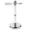 Voici l’objet absolument nécessaire pour tous ceux qui se rasent mécaniquement, afin que le rasoir et le blaireau ne trainent plus près du lavabo et que madame cesse de ses reproches… De plus le blaireau, en séchant poils vers le bas, aura une longévité plus importante. La large base assure sa stabilité et le patin en caoutchouc collé dessous empêche qu’il ne glisse ou qu’il raye le marbre.