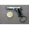 Porte-clé avec miniature très réaliste de pistolet Colt 1911 Stainless steel avec plaquettes de poignées en plastique noir
