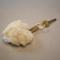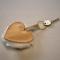 Ce joli bijoux de sac ou porte-clef a une face en cuir lisse beige naturel fintion tannage végétal ainsi qu'une face en véritable peau de mouton blanche.