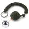 Porte-clés de défense "Monkey Fist" avec balle en acier et paracorde kaki. Discret et pratique, il sert d'arme contondante ou d'outil utilitaire.