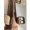 Porte Lance où étendard de cavalerie, fourreau en cuir brun, deux fixations par boucle d'une hauteur de 14 cm en bon état