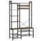 Ce porte-manteau 4 en 1 combine crochets, banc, porte-chaussures et étagères pour transformer votre entrée en un espace pratique et bien organisé. Il permet de ranger vêtements, accessoires et chaussures tout en offrant un coin pour s'asseoir.